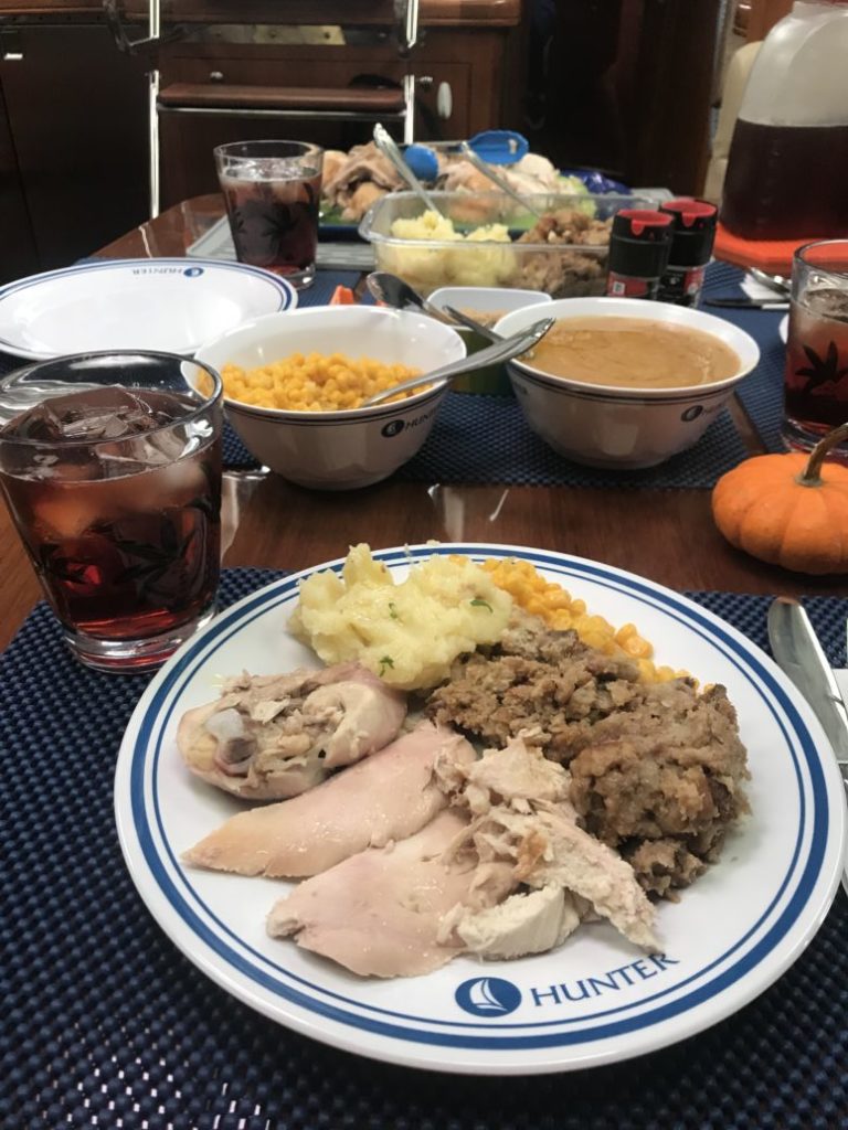 Our home cooked Thanksgiving meal aboard “Livin’ the Dream”