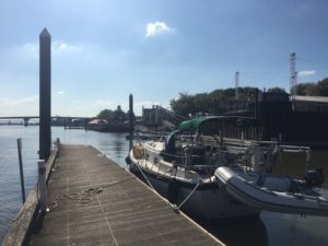 **UPDATE: Since I initially drafted this piece, a few developments of interest have occurred. After Peoria, we headed to Tall Timbers Marina, where were were informed the marina entrance should have enough depth for our just shy of 4′ draft – three attempts each resulting in needing to be towed out of the mud proved to the contrary. However, the marina owner felt so bad about our predicament that he allowed us to dinghy from our nearby anchorage to use his facilities and have dinner with our “adopted parents” from “Knight’s Kingdom” in the little town of Havana. From there, we moved onto the iconic Logsdon Tug Service in Beardstown, Illinois. Needing to squeeze ahead of a pontoon boat docked most inconveniently in the middle of the barge on which we were instructed to tie, and with the current being fairly strong, I powered Albion up into the small space available only to have our throttle issue flare up again causing her to die as we, coming in “hot,” careened into the side of the barge – thankfully, our Rocna took most of the blow, though the mahogany bow pulpit now has some gouges from the anchor shank and I had to have a new bow light to replace the now shattered one overnighted to Grafton Harbor where, we are currently residing while we wait for the currents to calm on the Ohio River. Some of you may be wondering why so few pictures of quality accompanying this blog post and silence on Instagram – well, in keeping with what has become the constant story of this trip, while walking up to get ice-cream, my phone went black and will not turn back on, taking with it two years worth of photos, including hundreds from this trip – so, another, and this one far more expensive, package being overnighted to the wonderful Grafton Harbor where we sit waiting to eventually head down the Mighty Mississippi to Hoppi’s – and somehow I am supposed to make an “adventure” out of that development too, or so the saying goes.