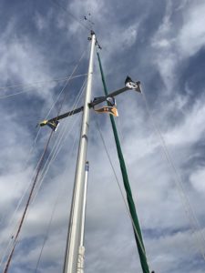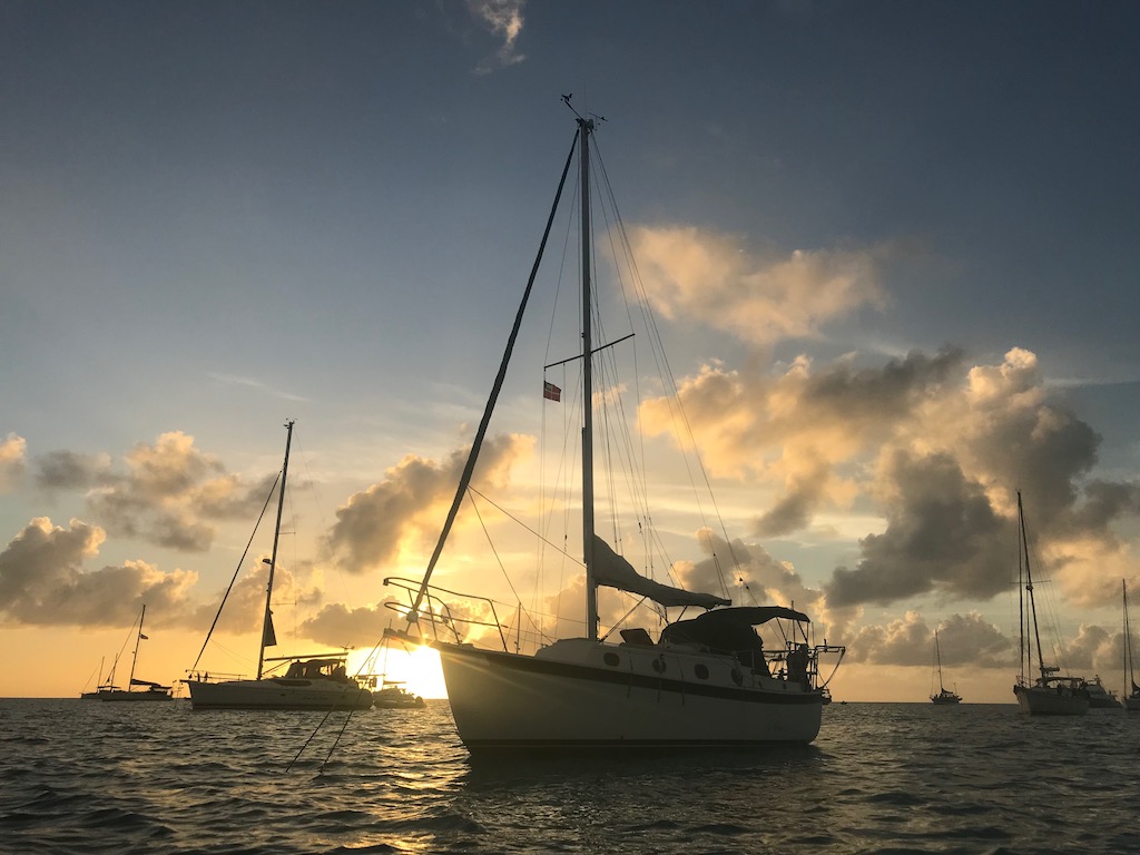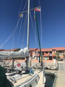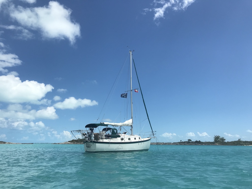 The AGLCA flag made few appearances after the Florida Keys, in part due to the lack of “Loopers” who make the crossing to the Bahamas – a prime example of how our journey departed from that of the “typical” Loop experience.  The ultimate absence of the AGLCA burgee from our spreaders, however, was not because of disassociation or intentional distancing, but rather, due to its unfortunate succumbing to mildew while stowed during my Atlantic crossing. This timing was felicitous, as by this time, our progress placed us well south of the Loopers, most of whom were much further north at this point, seamlessly, the Port spreader was graced with the navy and yellow “Flying Fish” burgee of the Ocean Cruising Club (OCC) – a burgee that must be earned, a burgee that signifies having accomplished qualifying sea time and offshore passage distance, a burgee that demonstrates offshore sailing experience – experience that came through embracing departures from the “plan.” Experiences that we never dreamt of on the prior birthday “eves” – experience we could not have gained were we to have remained, as Sterling Hayden so eloquently described, “…enmeshed in the cancerous discipline of ‘security.’” Experiences that could not have been had were I still “…glued to my Herman Miller chair in the office.”