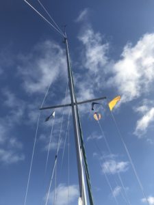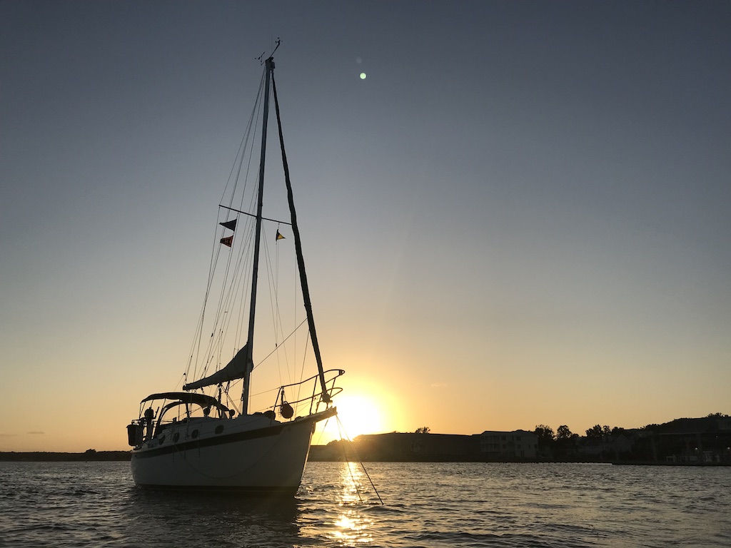 The flags tell a story – where we’ve been and where we’re going. The Pentwater Yacht Club burgee, representing the sailing community in the home port from which Albion departed. The town in which our family boat frequented, annually, for thirty years. A town that played such a pivotal role in instilling the love of boating and sailing that fueled the dream that became this journey. Beneath that, the flag of the Hope College Sailing Team – a community that not only provided an outlet from the studies of college (though many practices I ran the committee boat, in part, so I could do homework) but also relationships that last into this day – the source of many of my closest friends. The “courtesy” flags, some legitimate and some for fun – the Conch Republic flag that flew so proudly during our month and a half stay in Key West, a time that includes some of our greatest memories, memories shared with people who have become lifelong friends. The Bahamas Courtesy flag, lightly faded from accompanying us over the course of three months in some of the most beautiful anchorages and accomplishments of the journey. The yellow Maritime Republic of Eastport flag, for those times ahead when anchored in Back Creek, because, after all, we can’t all be snobs.