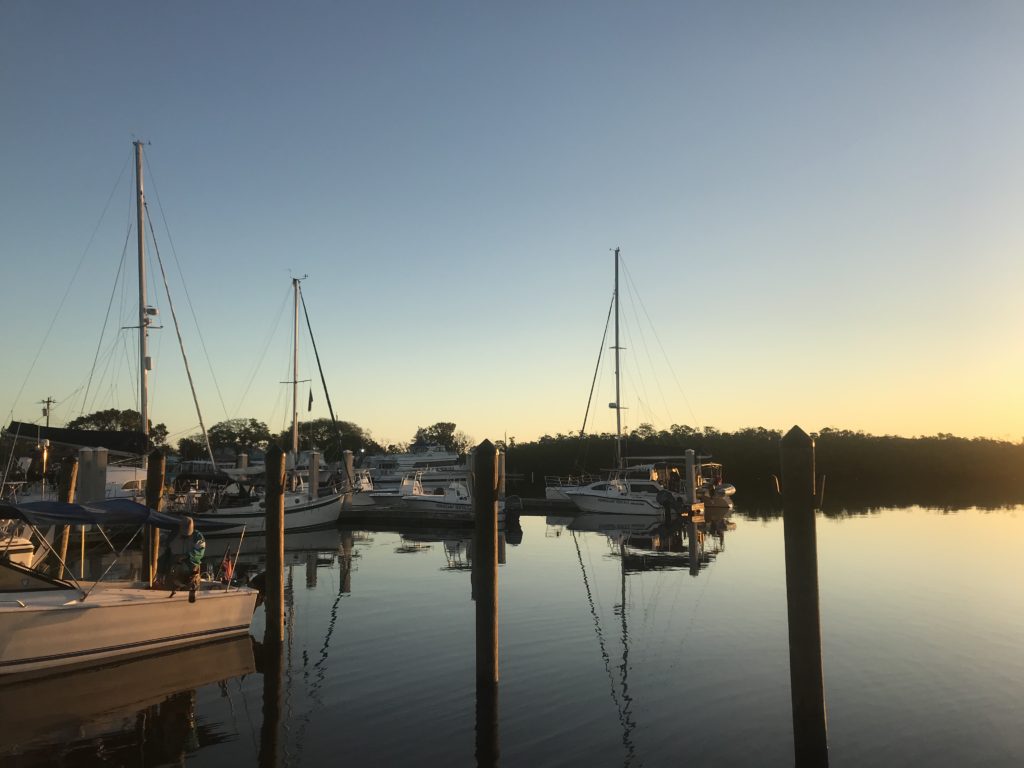 It’s not that Ziggy and I needed an escape from the marina that gravitated us to Miller’s Village daily, quite the contrary, we were leaving behind a great little community. We were all there for the same reason, though the specific circumstances were different in each case. I arrived under tow. Ohana was waiting on a titer test for their dog Thor. Capt. Steve was there “camping” on his boat for a working vacation, Captain Morgan’s (yes, the Captain Morgan) great-great-great grandson was cruising through the Keys, and SV Unwritten was, like all of us, waiting on the weather to cooperate. In that sense, our troubles were “all the same” to quote the “Cheers” theme song – as the daily grind of life united the patrons of Cheers, those of us in John Pennekamp Coral Reef State Park were united by our love of boating and desire for the weather to allow us to continue our desired travels. The weather was most important to those of us waiting to cross over to the Bahamas – and it proved to be a lengthy wait. The little community that developed during that time changed as boats came and went – but the core remained consistent, and even grew when another catamaran, Pappillon, arrived in the mooring field, also waiting for that coveted weather window. Captain Morgan was able to sneak down to Bahia Honda (allowing me to steal his slip on the floating pier after his departure) for a time, and when he returned to Pennekamp, we were all still there – leading him to quip to a fellow trawler that followed him up from Bahia Honda “You know the show ‘Cheers’? This place is like ‘Cheers.’ I know all these sailboats – There’s Ohana, and Albion… I know them all.”  As Buffett so eloquently sang in No Plane on Sunday, “…make the best of its ‘bout all you can do” – and that’s what we did. If there is a place to be “stuck,” with its abundant natural beauty, protected mooring field and marina, coral reefs, and, what proved to be, a community of caring boaters, John Pennekamp was certainly a good one. With some of America’s most beautiful reefs out our front door, a few of us grabbed our gear and boarded Ohana to snorkel the Christ of the Abyss statue and dive for some lobster at a reef outside the park boundary. The Christ statue alluded us as we never did find it and rather than come home with a bag of lobsters, we returned empty handed and I lost my tickle stick – but, we spent a day in the water observing some of the best dive spots in the Keys.  We also united over food, be it sundowners in the cockpit of Albion (that had to be moved inside when the downpour rain came) or taco night in the mooring field aboard Ohana. Most importantly, it was a community that looked out for and supported each other, as was evident throughout the process of getting Albion’s little Universal up and running again as well as when the dinghy motor decided to throw a tantrum – only days before departure.
