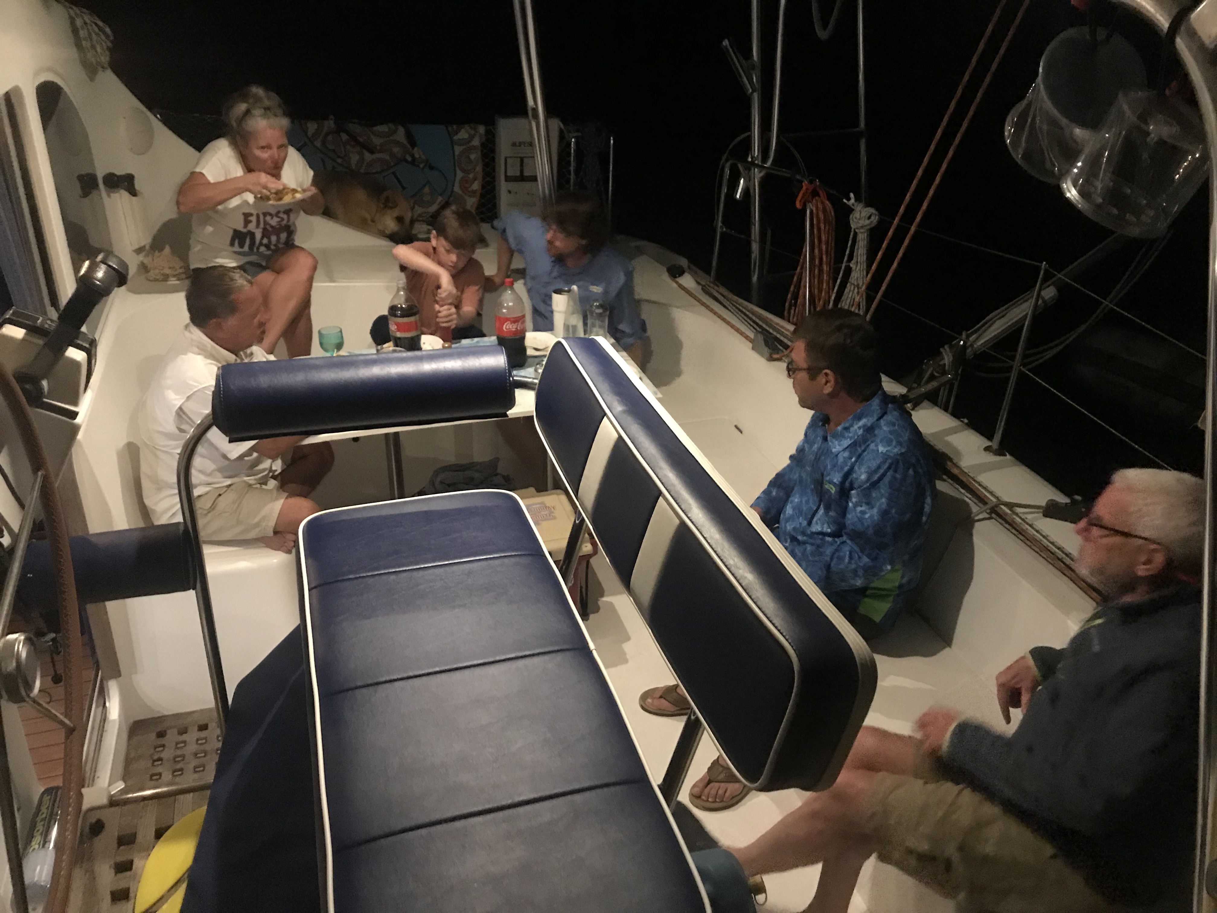 Taco night aboard Ohana – with Tim & Candy, two of the the SV Unwritten gang, Capt. Steve, and Pappillon