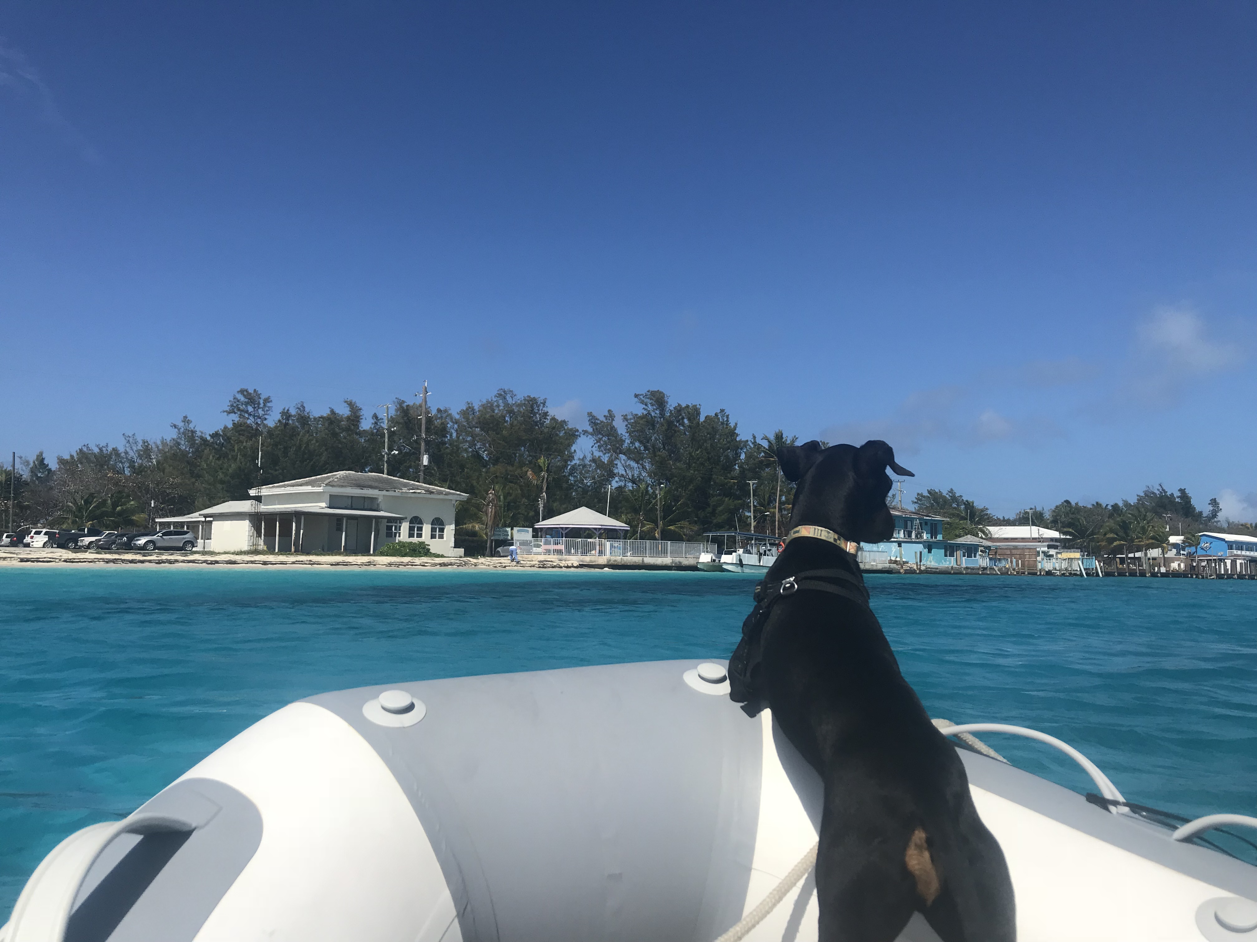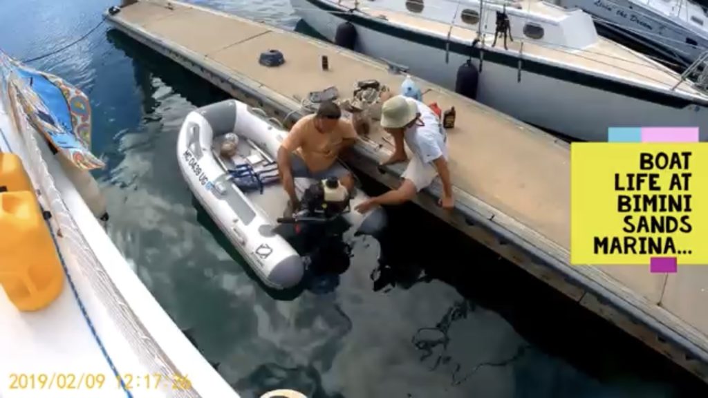 After exhausting the brain power of two very mechanically inclined buddy boats, we learned from a German cruiser of a local mechanic, Orlando, who the cruiser swore was the best in the Bahamas and confident that, if we could get ahold of him, Orlando would get the pesky motor running. Through the Bimini Coconut Telegraph, Cindy of Livin’ the Dream was able to, though not directly (everyone seemed to know him but not have his number…), get through our need for Orlando’s services. Come Monday, Orlando arrived, after feeding the marina cats, with his golf cart and took the motor to the back lot of Bimini Sands Marina where he returned shortly after to see if I had some oil and asking that I come along so he could show me the problem. Apparently, fuel was getting into the oil – likely from the constant flooding, causing the motor to fail to run. Since the oil had not been changed subsequent leaving home, between the ethanol remnants in the carb and the fuel content of the oil increasing, this was likely the source of our problems throughout much of the trip – the backyard Bimini mechanic solved in less than an hour, for $60, what multiple Yamaha Certified dealers and over $1,000 did not. With a safe arrival in Bimini, being reunited with our long-time buddy boat and cherished friends aboard Livin’ the Dream, a new friendship with Ohana, lifelong memories from our time in Pennekamp, and now a working outboard, Ziggy and I dinghied into North Bimini to explore (watching a ray swim beneath us in the cut) and, taking advantage of our newfound freedom, drifted back to South Bimini – enjoying the larimar blue waters as we slowly drifted towards the channel into Bimini Sands Marina and an evening ahead watching the sunset with our cruising friends.